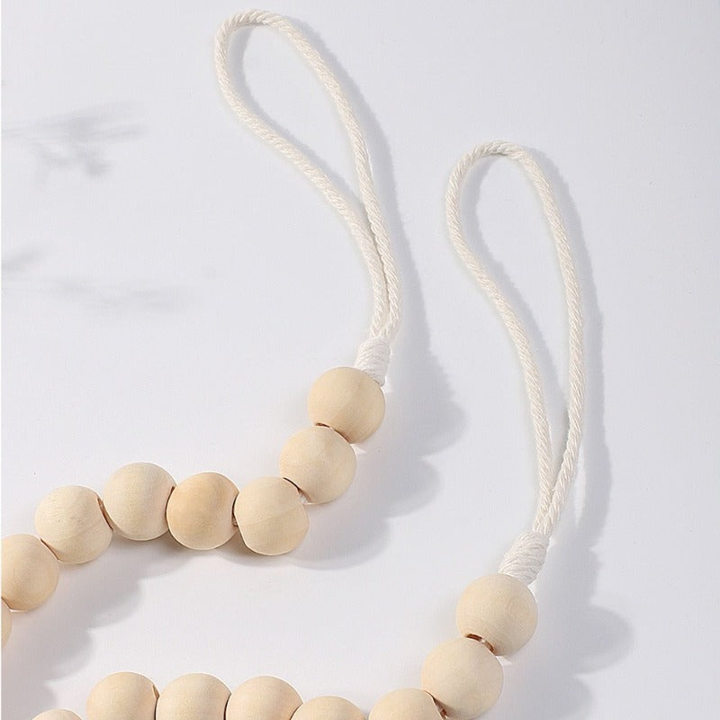 L’embrasse rideaux en tressage orné de jolies perles en bois naturel.