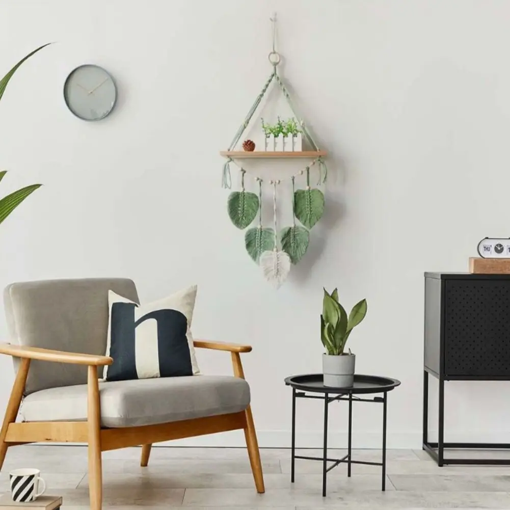 Offrez-vous cette magnifique étagère en macramé et donnez de l’allure à votre intérieur ! En plus d’être un joli élément décoratif, cette étagère saura également accueillir vos pots de fleurs ou autres objets dont vous tenez.
