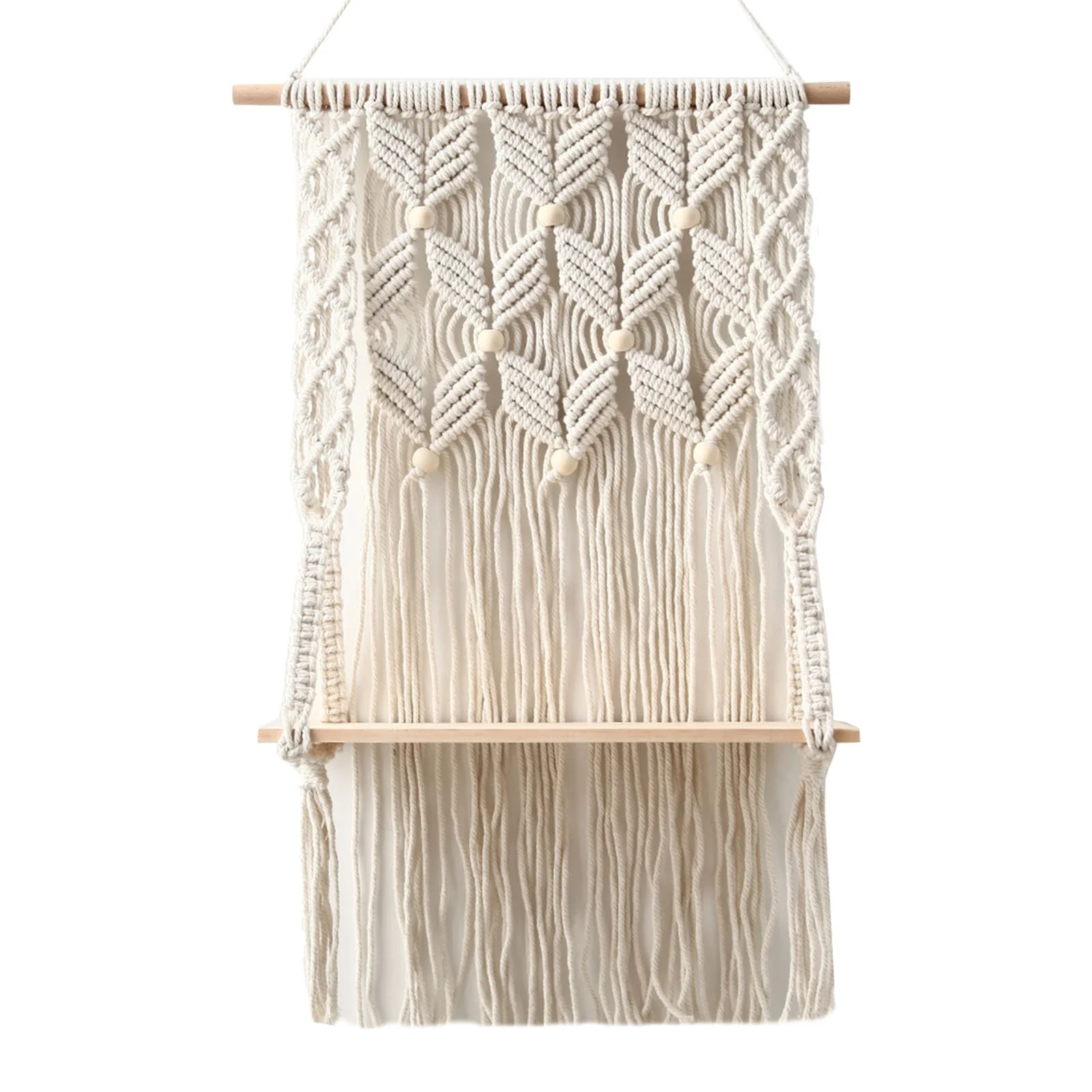 Les fils de coton tissés de cette étagère forment un lien intime avec la planche de bois, offrant à vos objets préférés un trône d’exposition captivant