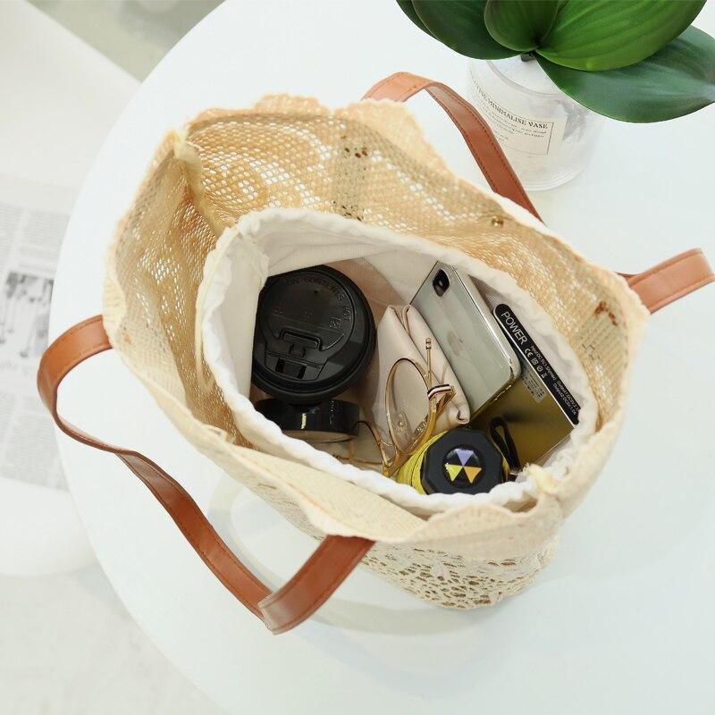 Laissez-vous emporter par les détails complexes de notre grand sac tressage. Fabriqué avec un tissage semblable à de la dentelle et une belle poignée en cuir, c’est l’accessoire d’été parfait. Avec trois options de couleurs au choix, blanc, noir ou beige il sera facile de trouver le style parfait pour vous. Sa construction solide et chic vous assurera un style inimitable. Avec son sac de rangement amovible voici une pièce pratique pour ranger tout le nécessaire afin de passer une bonne journée.