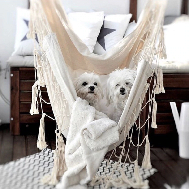 Quoi de plus parfait pour les amoureux des chats que le hamac pour chat ? Il offre à la fois fonctionnalité et esthétique, avec son attrait boho chic incontournable. Si vous souhaitez faire plaisir à votre animal de compagnie tout en optimisant l’espace de votre salon, c’est un investissement qui est justifié !