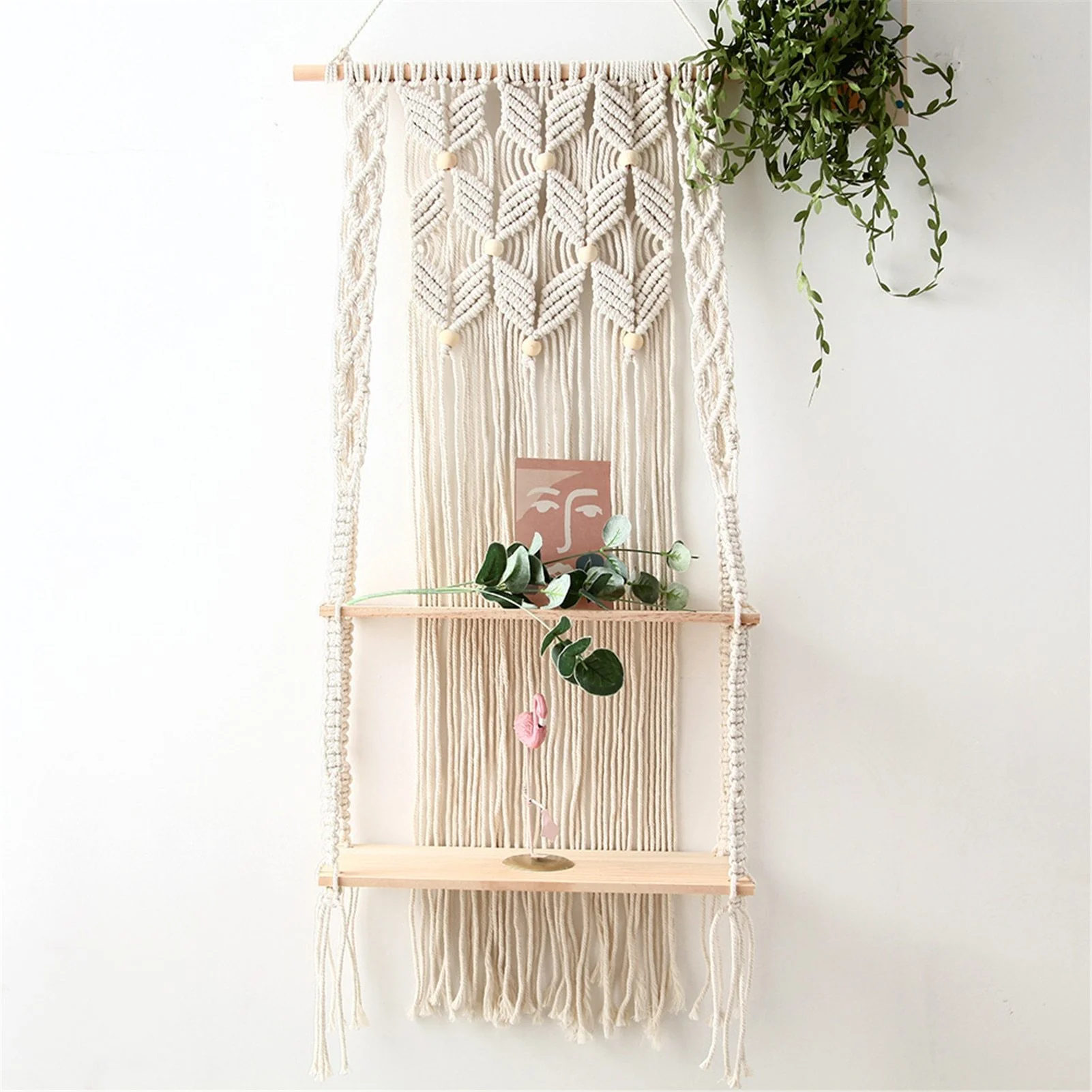 Macramé Étagère : craquez pour l’étagère en macramé à deux niveaux pour un somptueux meuble bohème