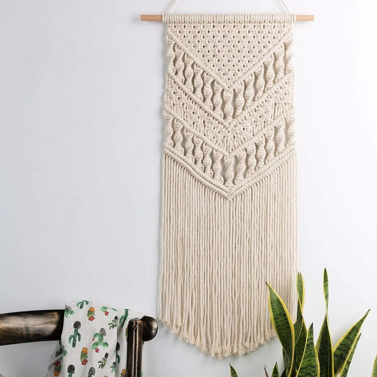 Habillez les murs de votre intérieur avec goût en étendant ce magnifique macramé mural blanc au mur de votre séjour ou de votre chambre à proximité d’une plante. La couleur écrue du coton se marie à merveille avec les couleurs verdoyantes de vos plantes d’intérieurs, profitez-en !