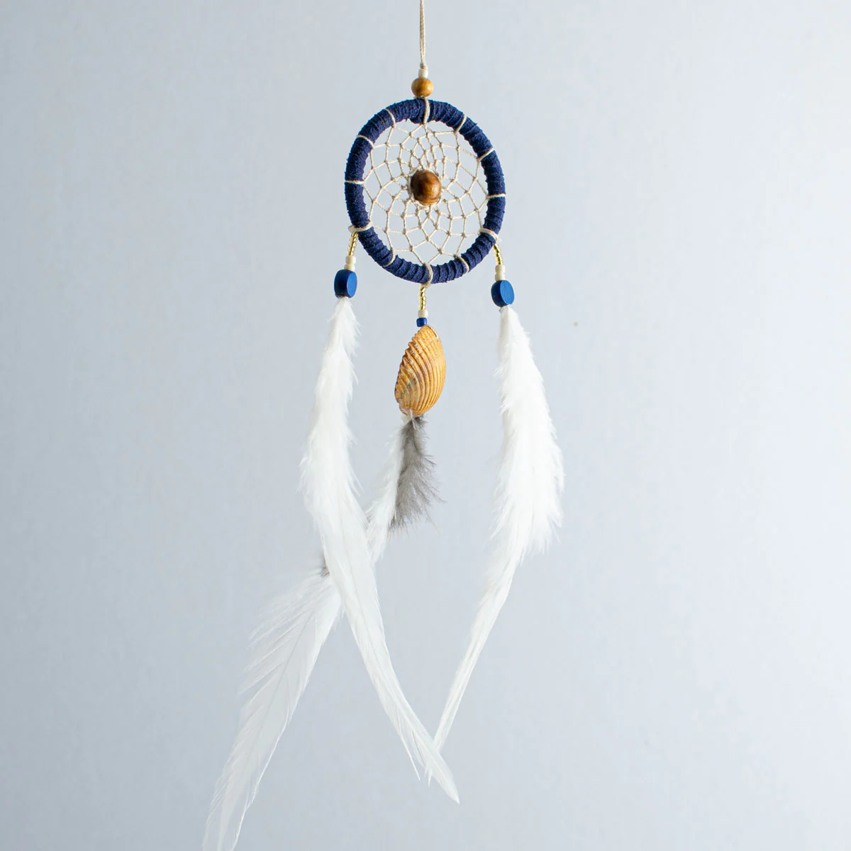 Mini attrape-rêve “Coeur de l’océan” est un mini attrape-rêve bleu marine qui célèbre l’océan et la mer, qu’elle soit vierge, fauve ou sauvage. Il est paré d’une coque ocre-safran ramassée sur la plage de Wisant, l’une des plus belles plages de la Côte d’Opale.