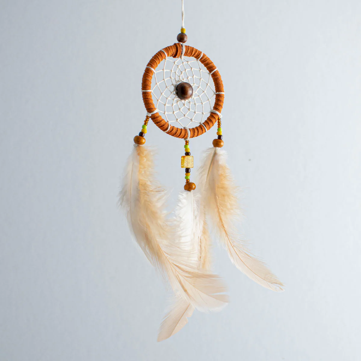 Mini attrape-rêve “Automne rayonnant” est un mini attrape-rêve artisanal aux teintes automnales, qui invite à la sagesse, au calme et au laisser-aller.