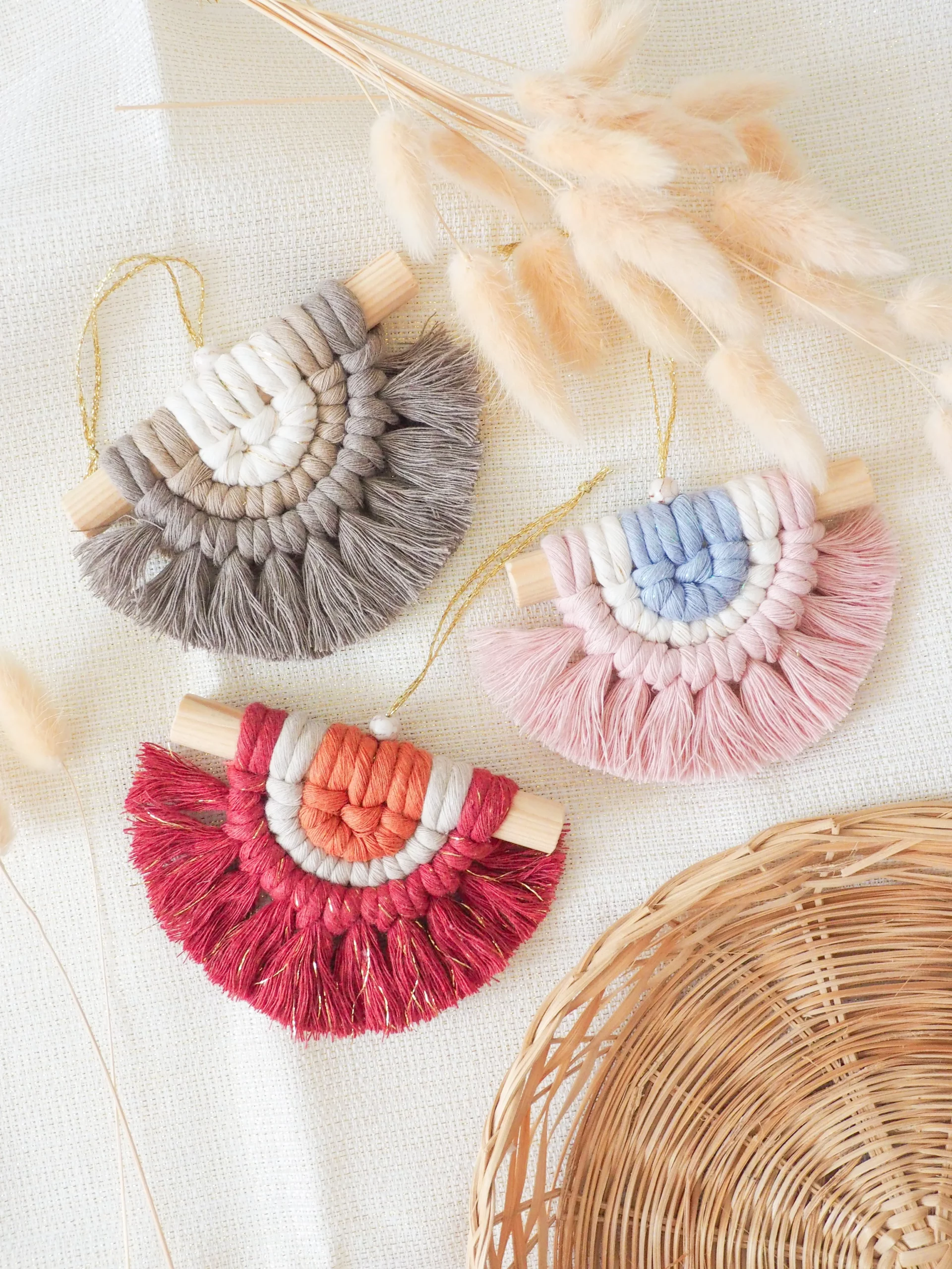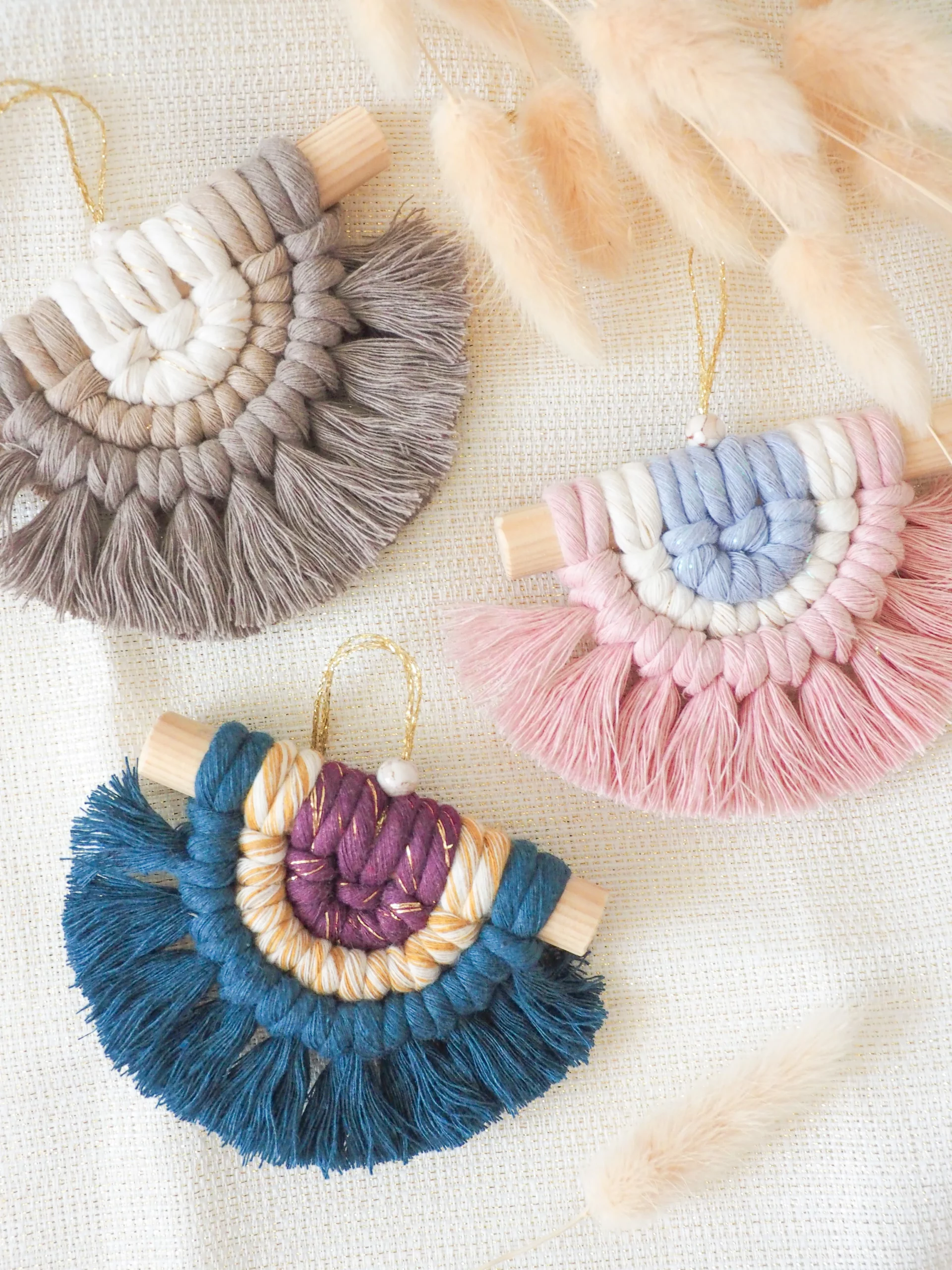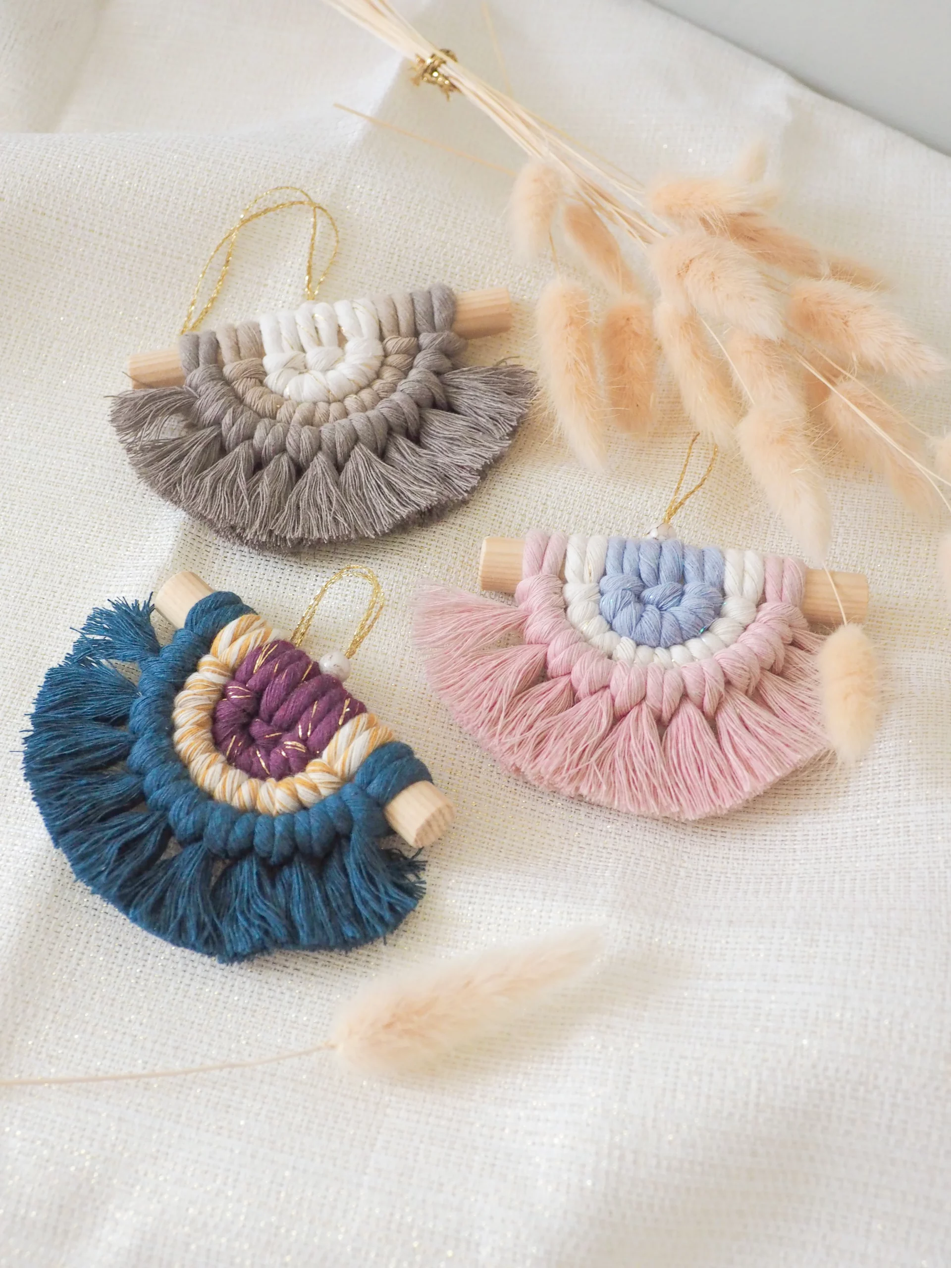 Mini macramé à accrocher au mur ou au rétro de votre voiture.