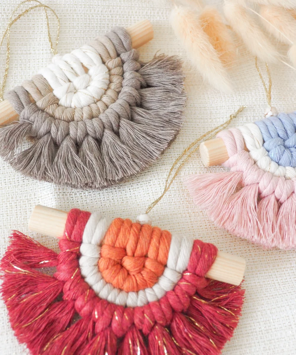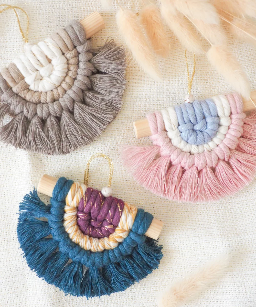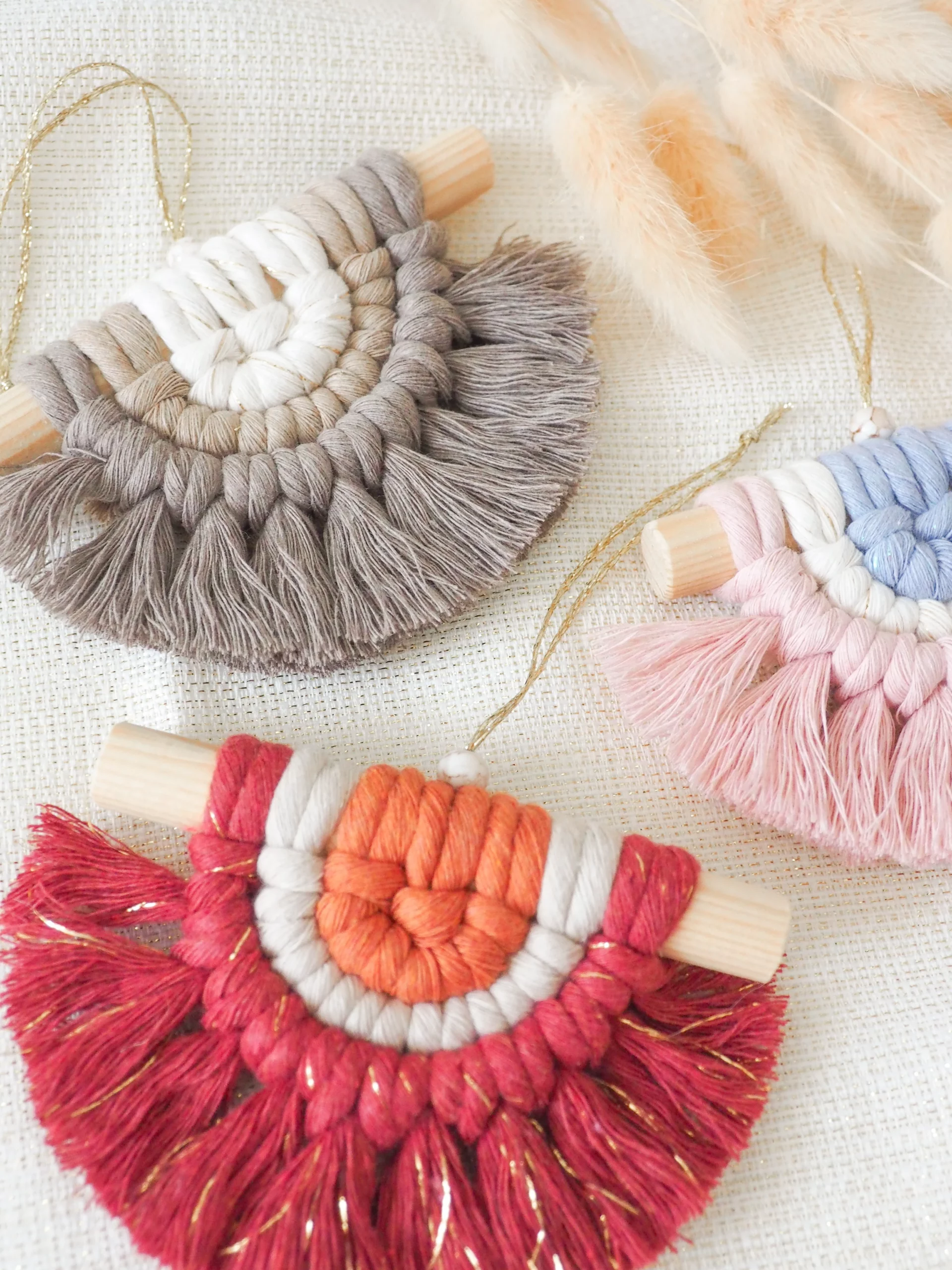 Mini macramé à accrocher au mur ou au rétro de votre voiture.