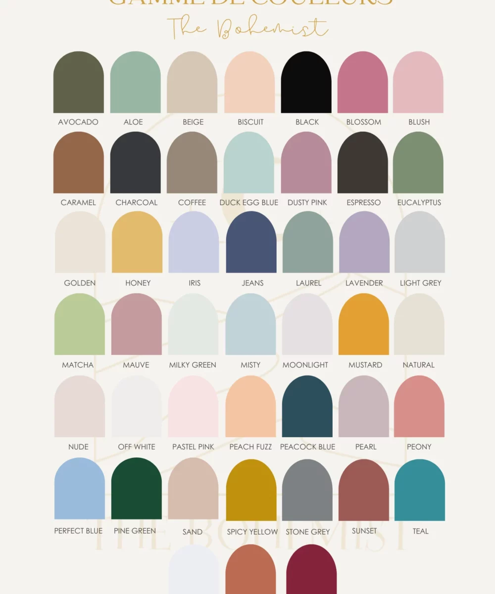 - Merci de sélectionner le coloris souhaité dans le nuancier ci-dessous