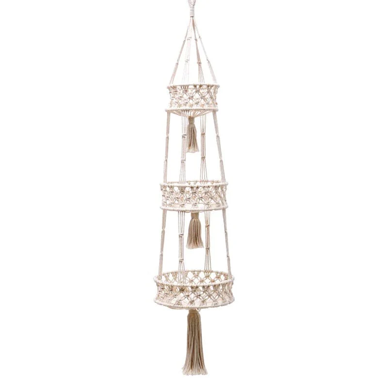 Son format composé de trois étages vous permet d’organiser vos fruits et légumes à votre convenance. Cette corbeille à fruit suspendue apporte douceur et authenticité à votre intérieur. Craquez pour son assemblage en coton fait-main qui sublimera la décoration de votre cuisine dans un esprit bohème et naturel des plus épatants.