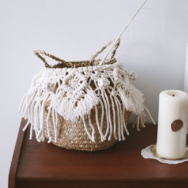 Un petit panier en tressage avec un grand tissage bohème