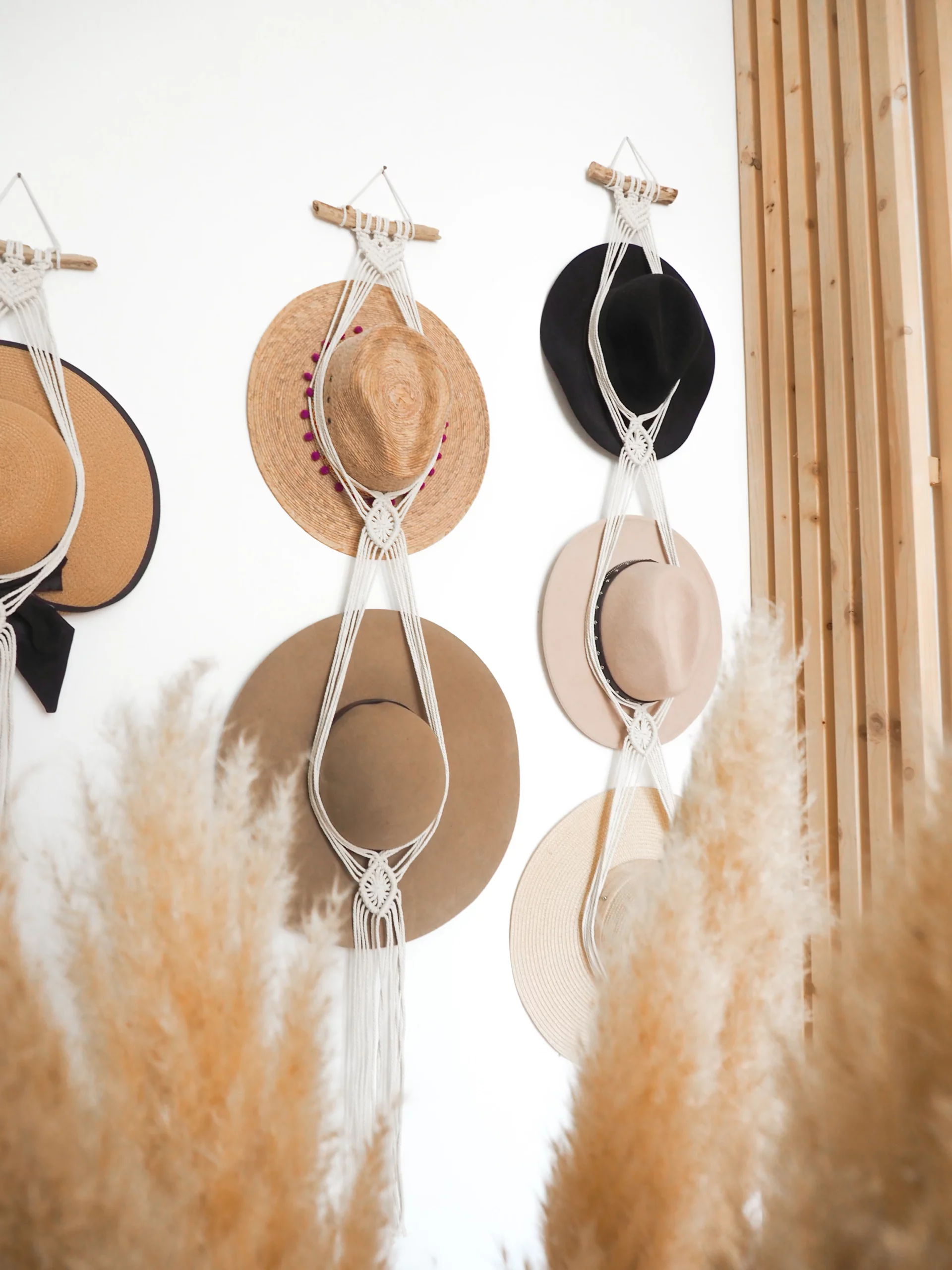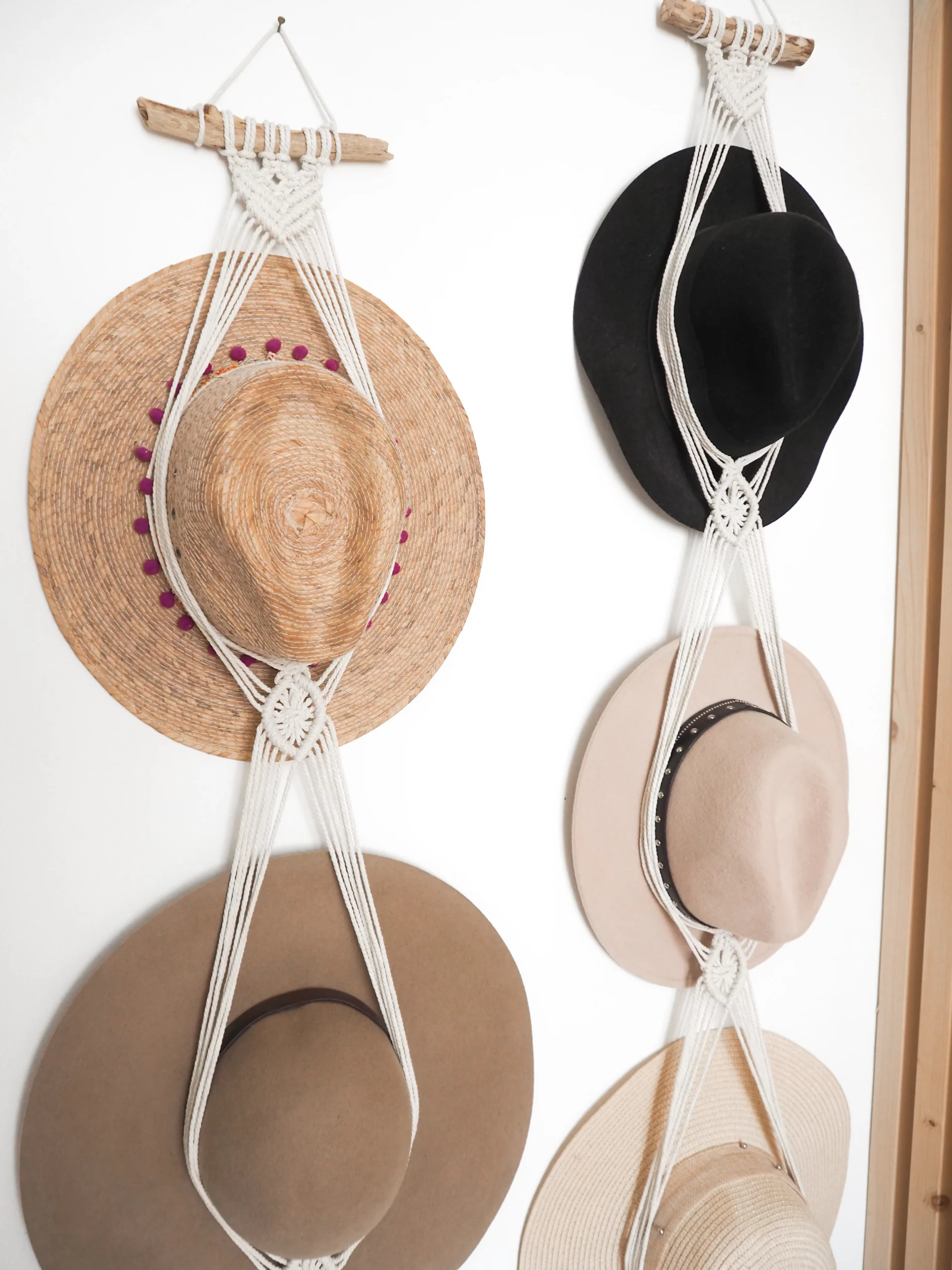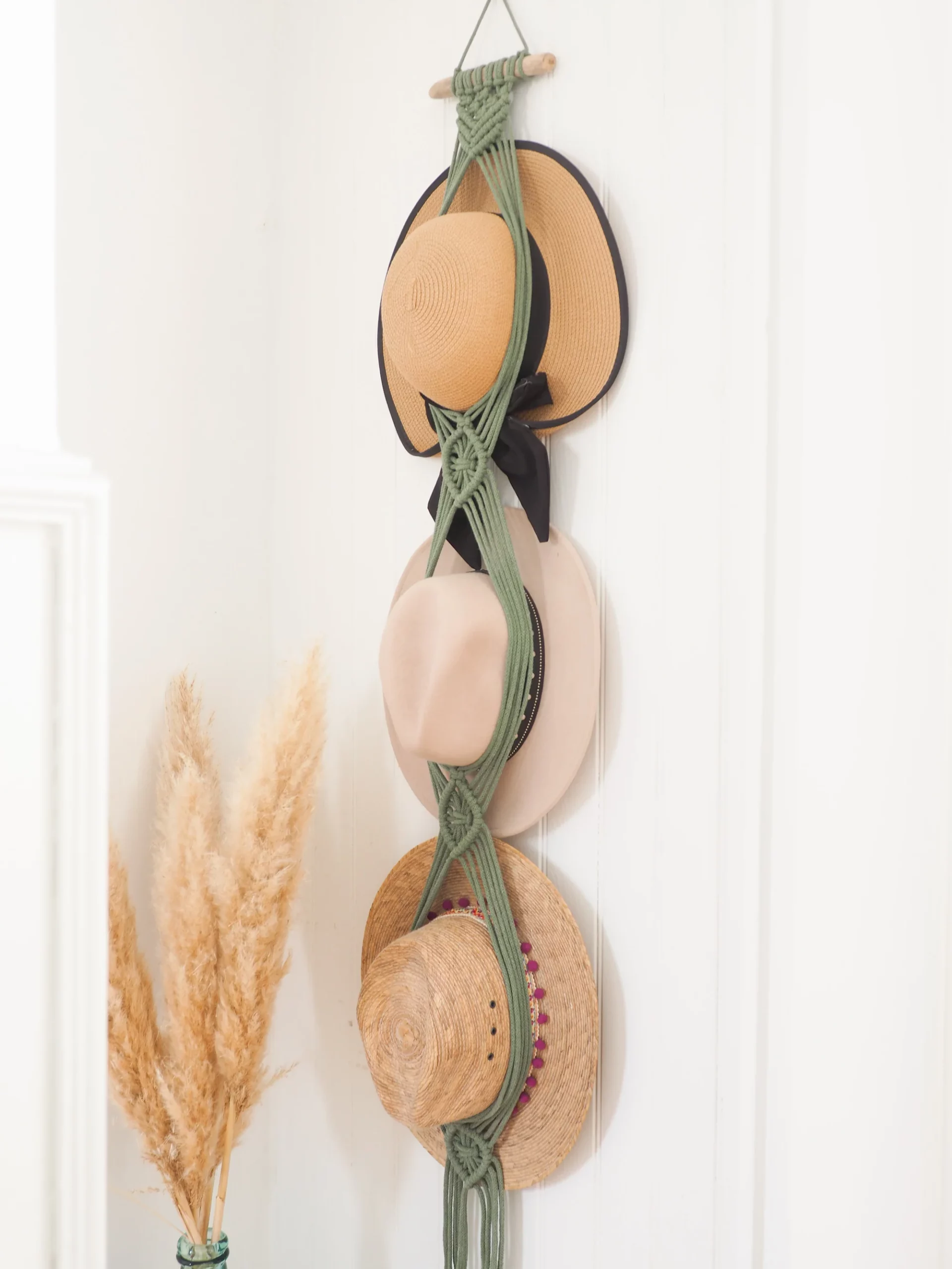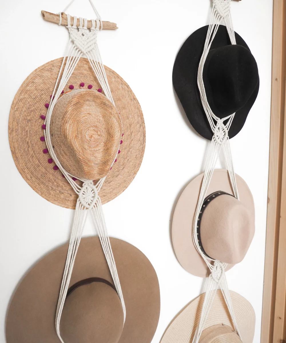 Porte chapeau en macramé réalisé à la main.