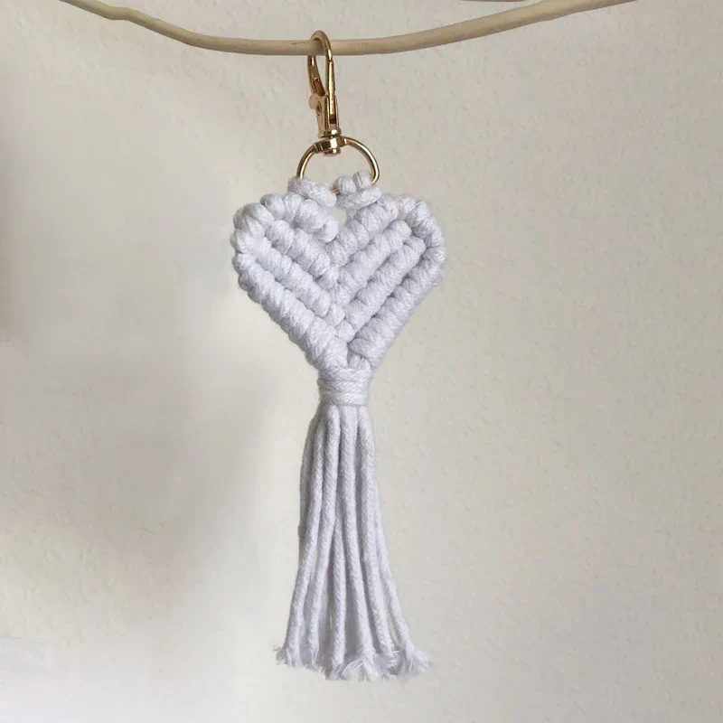 Ce porte-clé macramé en forme de cœur, épais et texturé, est un accessoire bohème fait main qui permet de personnaliser son style avec différentes couleurs. Fabriqué en coton naturel durable, il représente un cadeau original et attentionné qui saura plaire à tous les amateurs de style boho.
