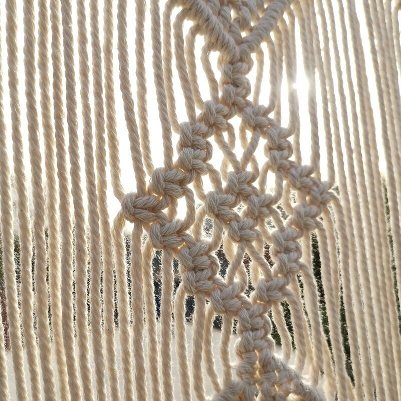 Un classique du rideau tressage avec ce tissage en tressage géométrique qui filtrera avec grâce la lumière pour embellir votre décoration d’intérieur. Fait-main en coton naturel notre rideau brise-bise il vous accompagnera un long moment et s’ancrera dans une décoration naturelle qui vous apportera un sentiment d’apaisement unique.