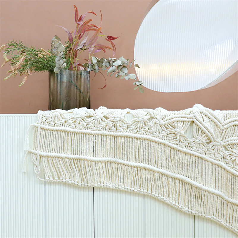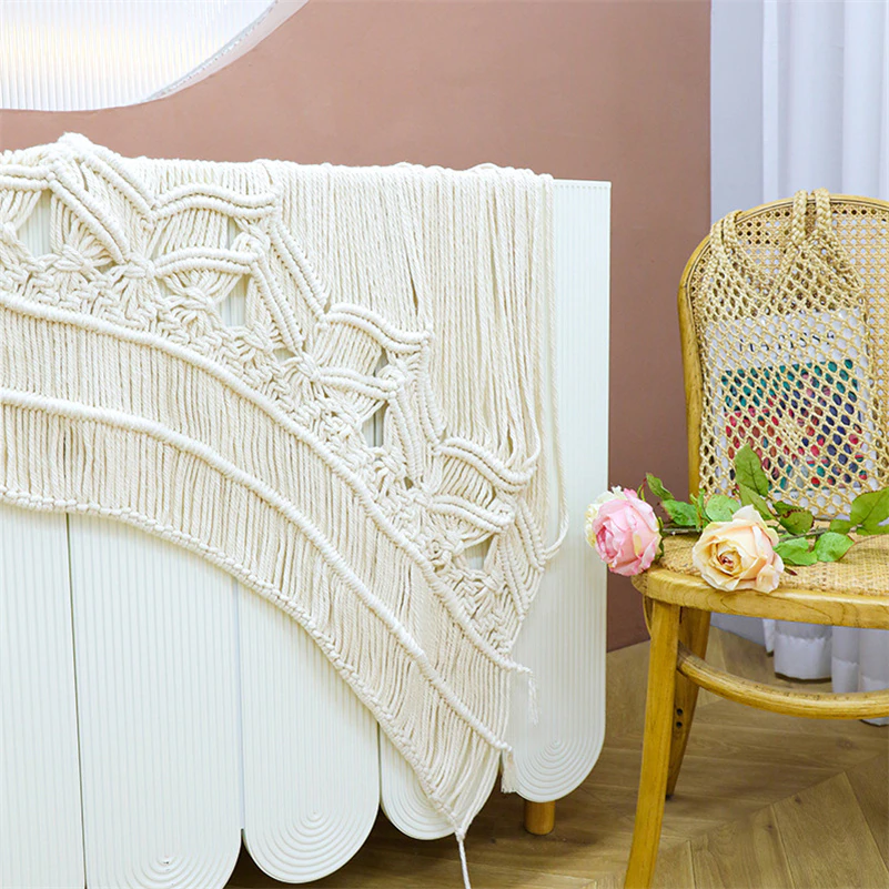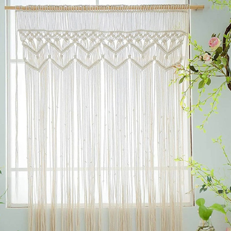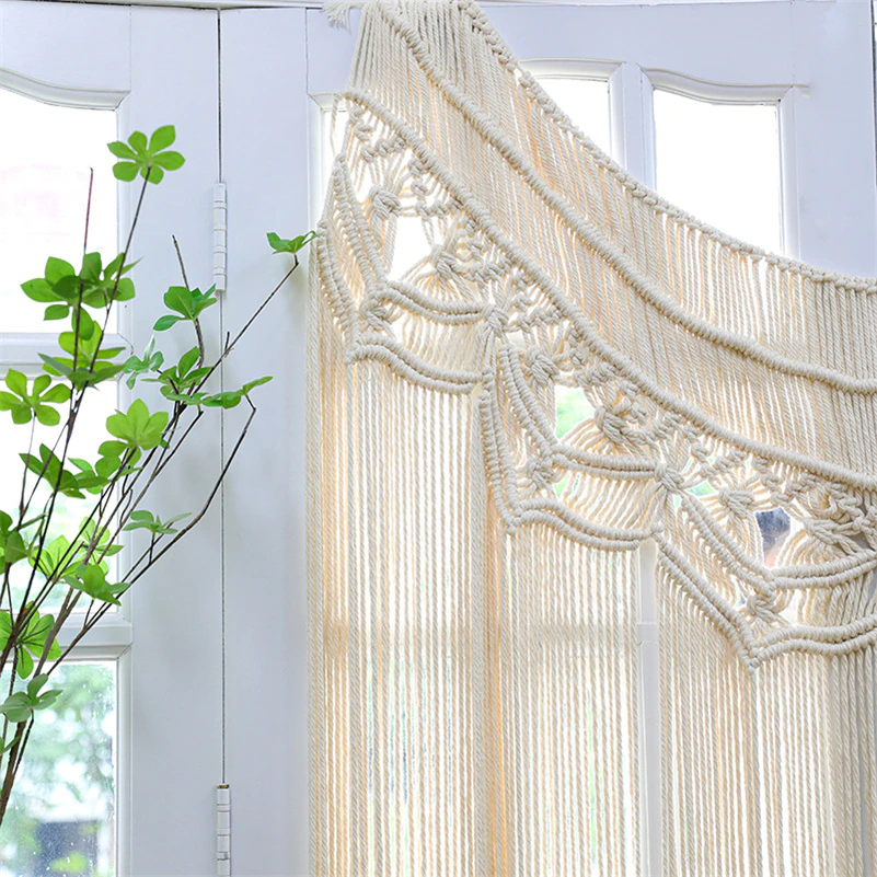 Craquez pour ce rideau tressage blanc fait à la main en corde de coton.