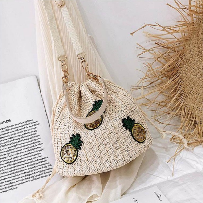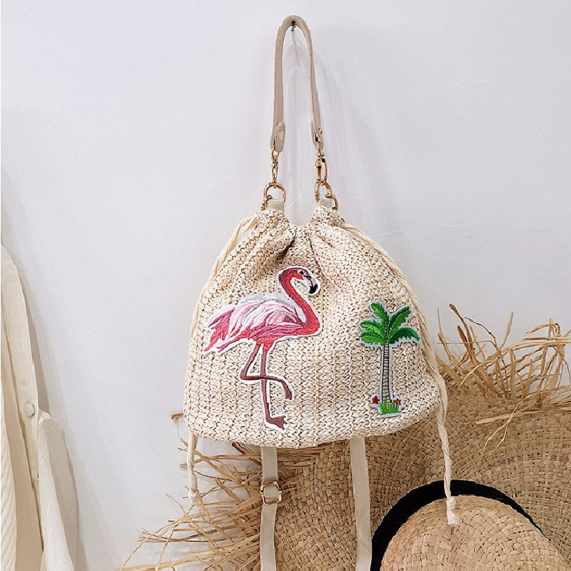 Vous recherchez un sac à main unique et élégant pour vos aventures estivales ? Ne cherchez pas plus loin que ce sac à main en tressage ! Tissé en rotin dans un motif duo flamant rose et palmier ou ananas, ce sac à main est à la fois accrocheur et élégant. Il est doté d’une poignée en perles blanches, ce qui en fait un accessoire bohème chic parfait.