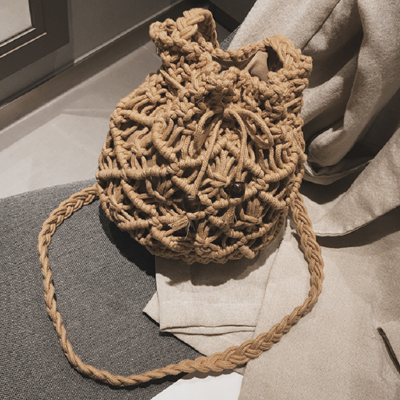 Craquez pour notre sac seau en tressage fait en coton avec son tissage complexe.