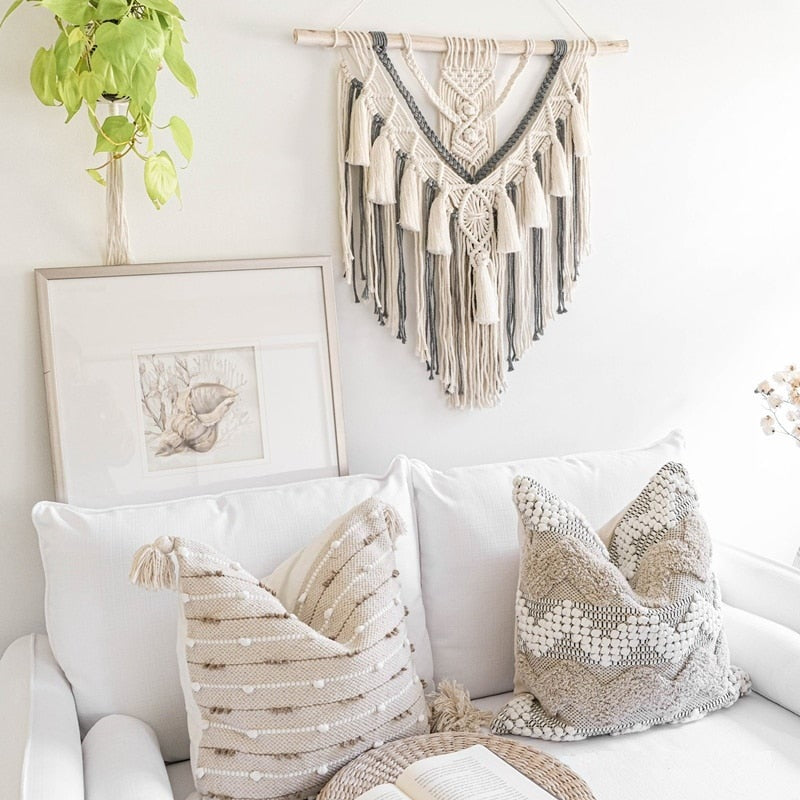 Le tressage est une technique faite pour la maison car il a à la fois de la texture et de la couleur. Cette suspension tressage murale bicolore sera un plus dans votre chambre ou votre salon pour ajouter un peu de style bohème !