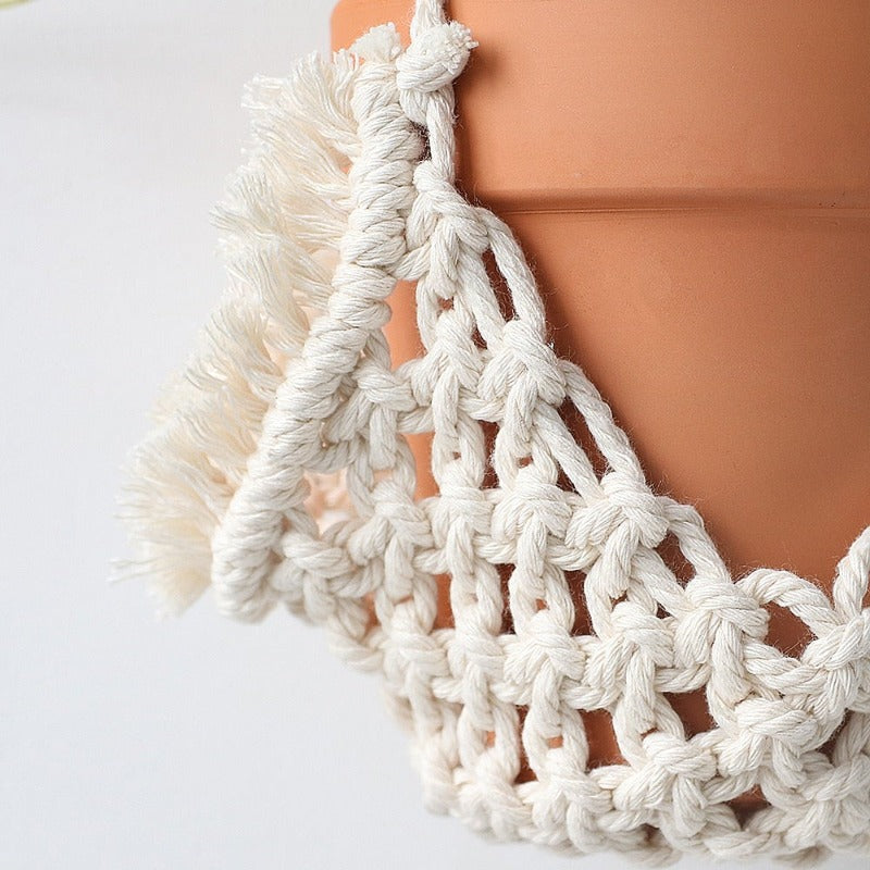 Imprégné du style vintage intemporel du tressage, cette suspension pour plante sublimera votre verdure ou vos fleurs et permettra de créer une ambiance zen très agréable dans n’importe quelle maison. Une plante surélevée lui offre une garantie de longévité : vous ne la ferez pas tomber par mégarde en passant à côté, ce qui peut arriver quand la plante est au sol !