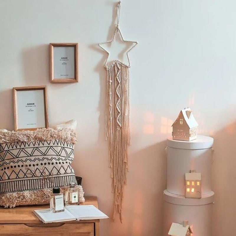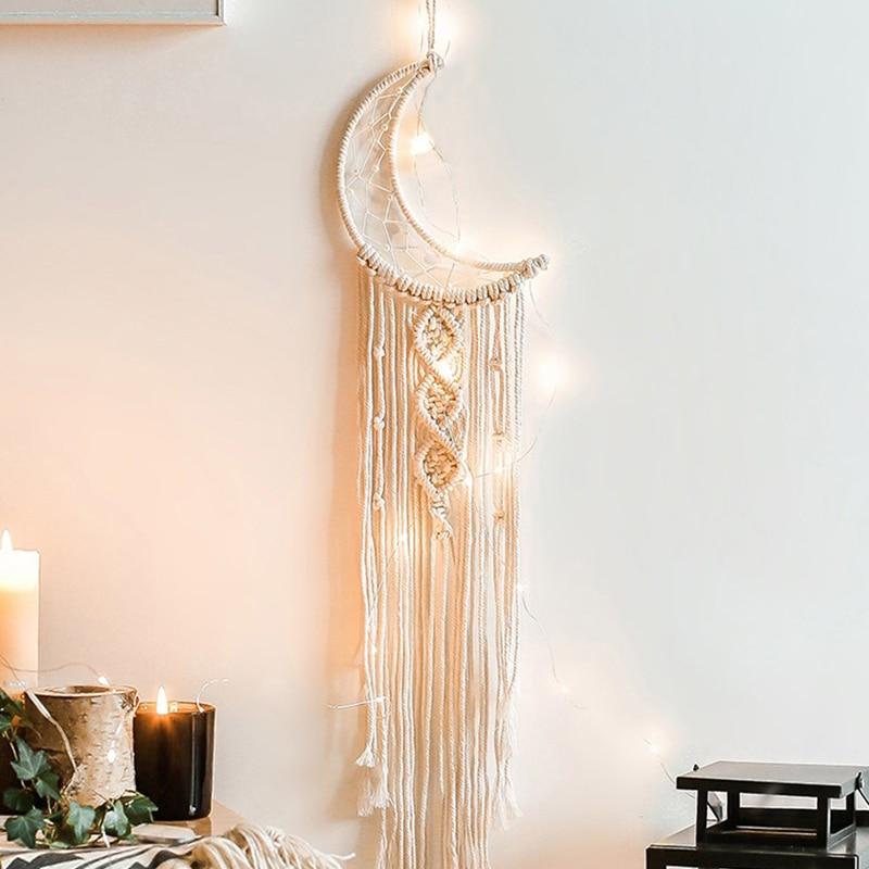 Craquez pour notre attrape rêve tressage disponible en forme de lune ou en forme d’étoile. Son fin tissage met le tressage à l’honneur par des formes harmonieuses qui se terminent sur un astre en lune ou en étoile. Les capteurs de rêves sont un excellent moyen d’ajouter un style d’inspiration indienne à votre maison. Le design en tressage est parfait pour toutes celles et tous ceux qui veulent avoir le plaisir du toucher doux des matériaux naturels.