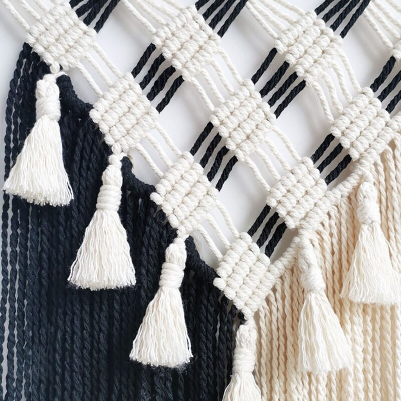 Le tressage est une technique populaire pour la décoration des maisons dans les années 70 et 80. Cette création bohème apportera un peu de cet esprit old school avec son motif de tressage noir et blanc, qui contrastera joliment avec les autres couleurs tout en gardant une touche élégante sur vos murs !