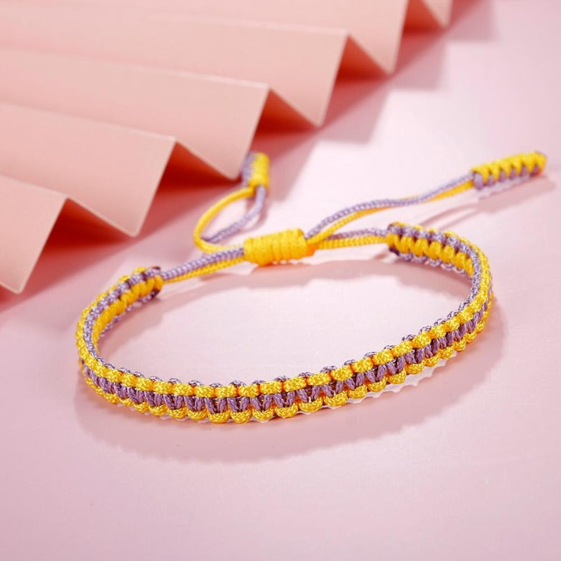Voici notre bracelet Macrame en zigzag, un accessoire élégant et accrocheur, parfait pour les tenues d’inspiration bohème. Fabriqué à la main à partir de coton robuste, ce bracelet présente un motif entrecroisé en deux tons pour une touche de fun. La fermeture par nœud coulissant le maintient bien en place, tandis que le rose, le bleu ou jaune ajoutent une touche de personnalité.